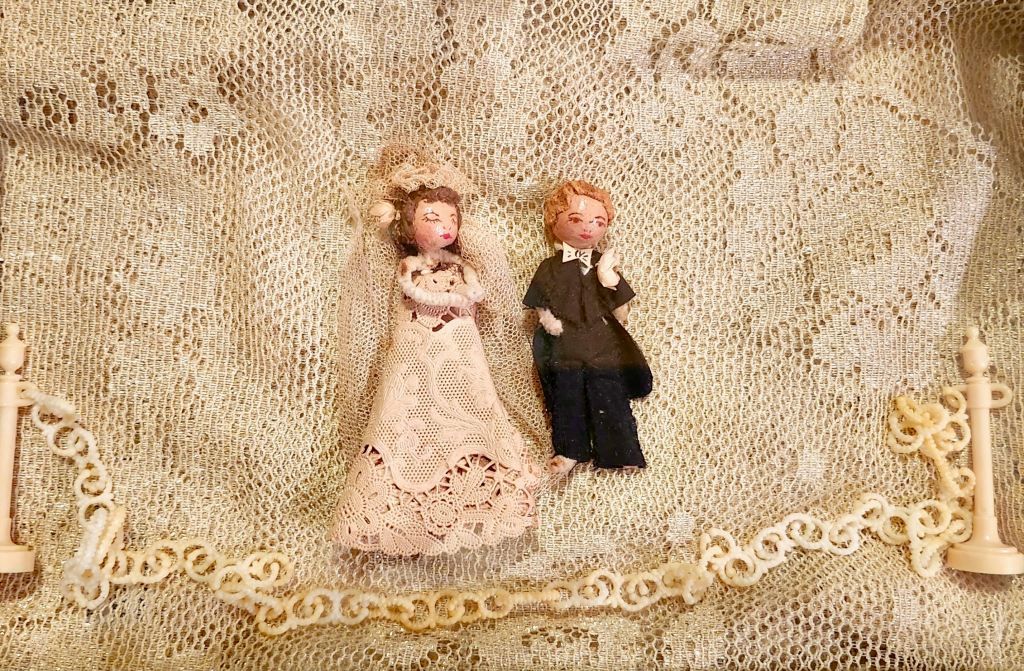 Vintage Cake Toppers with bride & groom prayer book